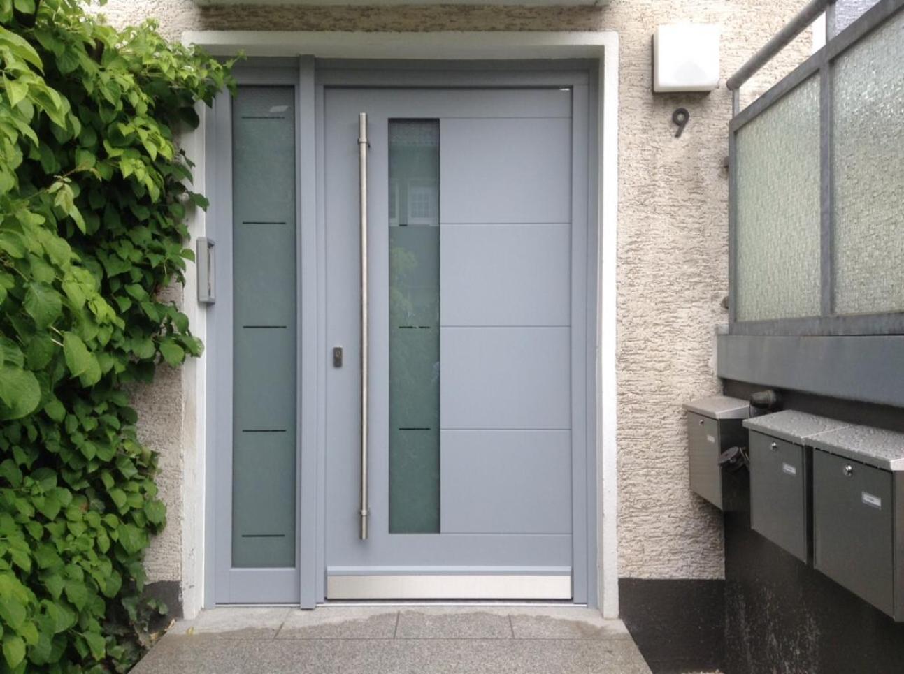 Holz-Haustür in hellgrau mit Seitenteil in Wuppertal - Ronsdorf