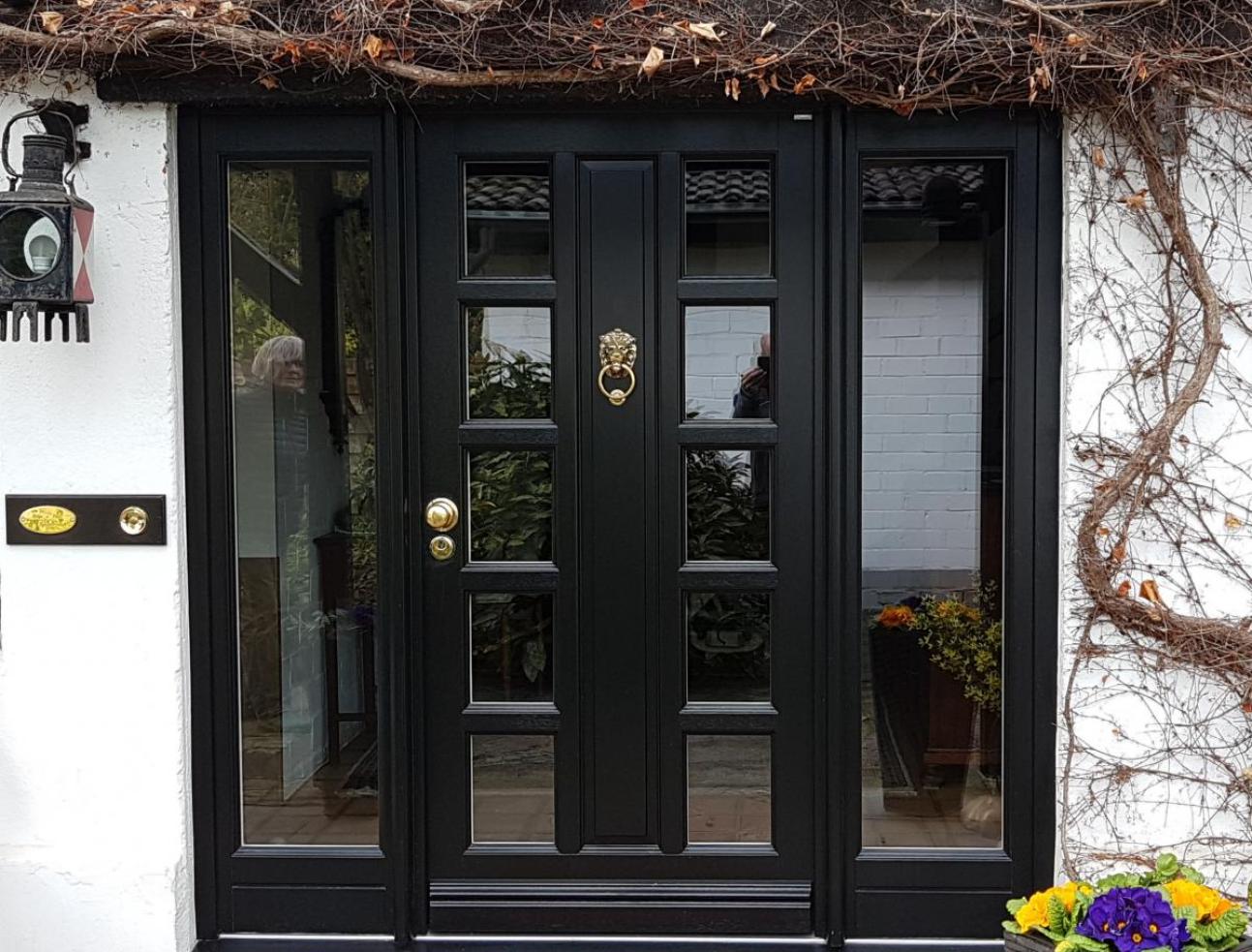 Holz-Haustür mit 2 Seitenteilen schwarz, Türklopfer in Solingen