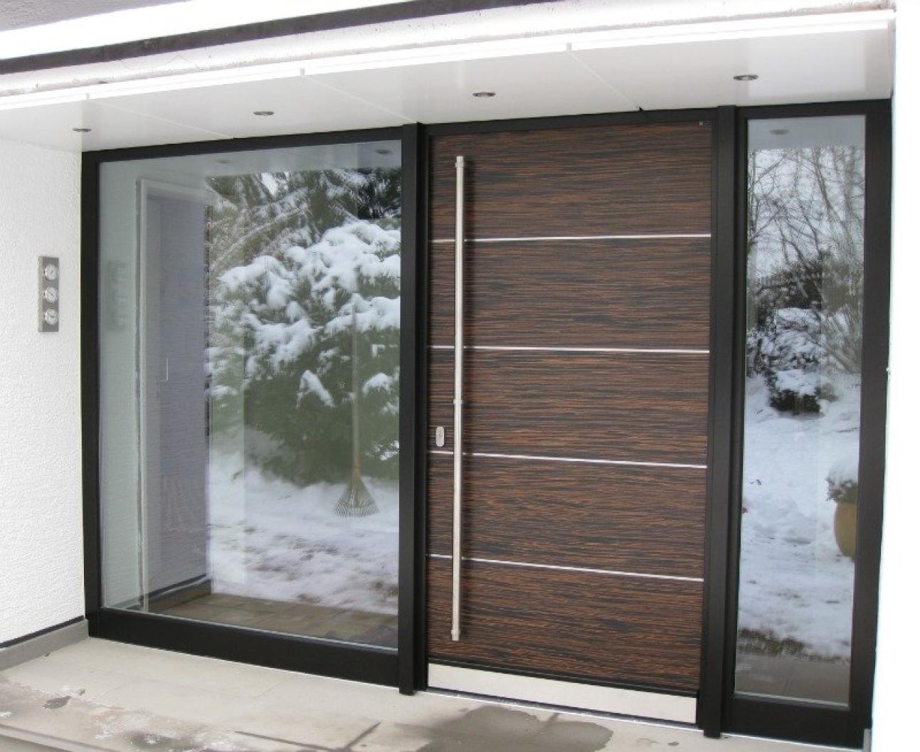 Holz-Haustür, Türblatt querfurniert mit Edelstahl Lisenen in Solingen