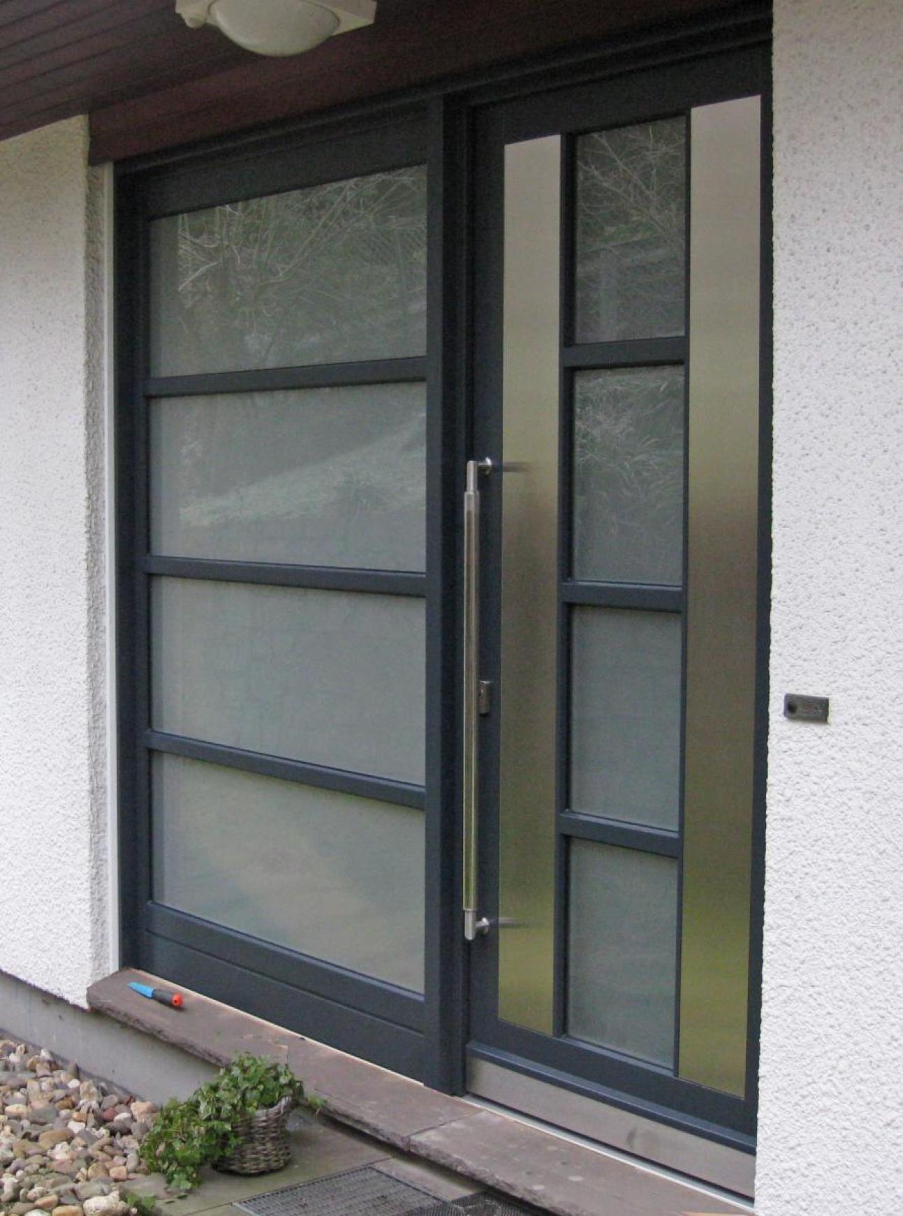 KOWA Holz-Haustür mit Edelstahl Applikationen, anthrazitgrau in Solingen