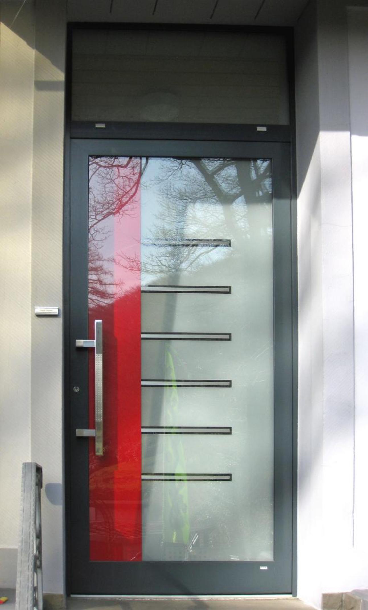 PaX Aluminium Ganzglas Haustüre mit farbigem Dekorglas in Wermelskirchen